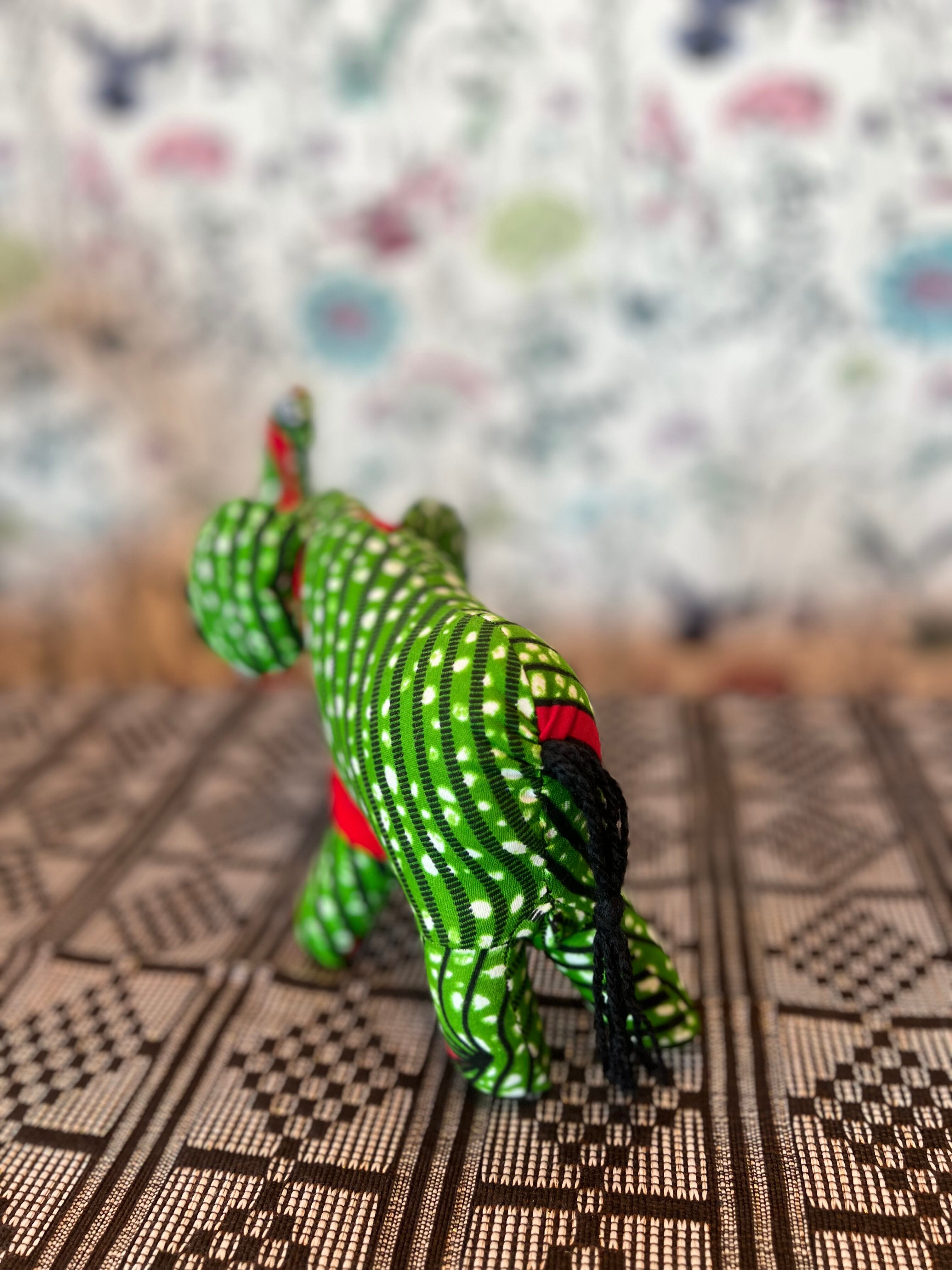 アフリカ布を使用したこのスタッフト アニマルは、ユニークで愛らしいデザインが特長です。お部屋のインテリアとして、子ども部屋のアクセントとして、またギフトにも最適なアイテムです!