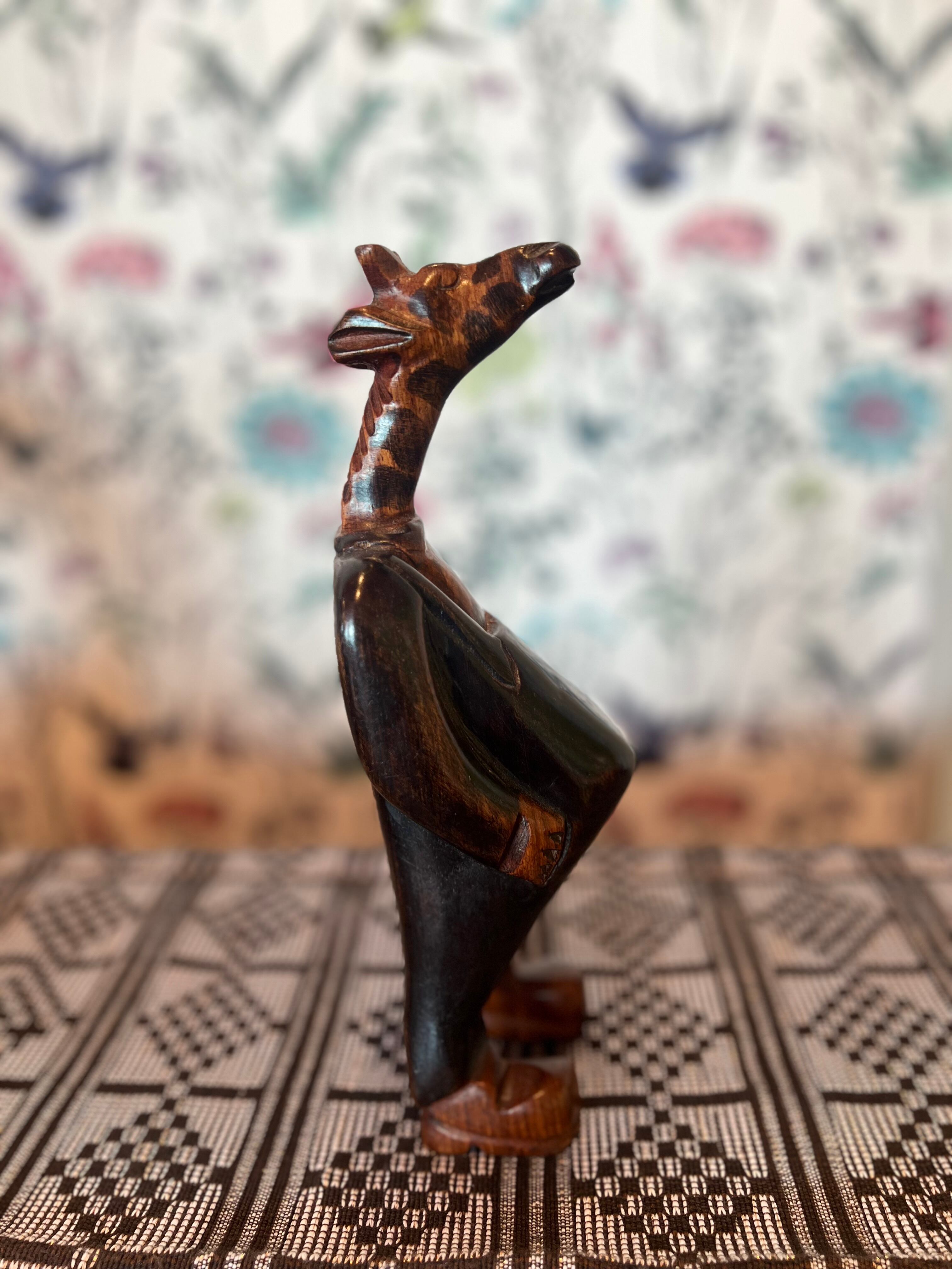 セネガルの職人によるこのウッド オブジェは、キリンを擬人化したユニークなデザインが特長です。お部屋のインテリアとして、個性的なアクセントとして、またギフトにも最適なアイテムです!